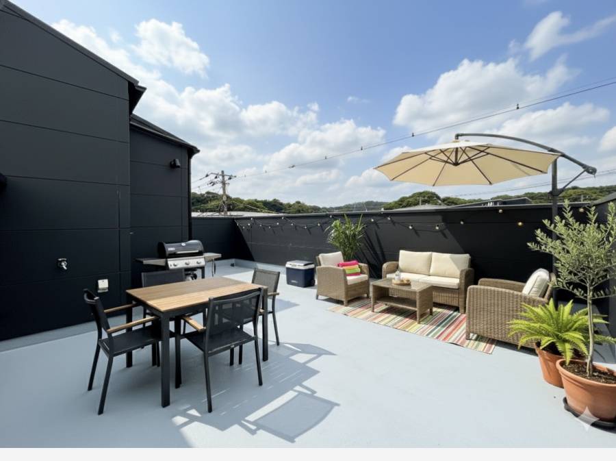 約11.8帖のルーフバルコニーでは、星空を眺めながら過ごすプライベートな時間を。海と街の心地よさが共存する逗子の地で、”暮らすこと”が特別になる一邸です。