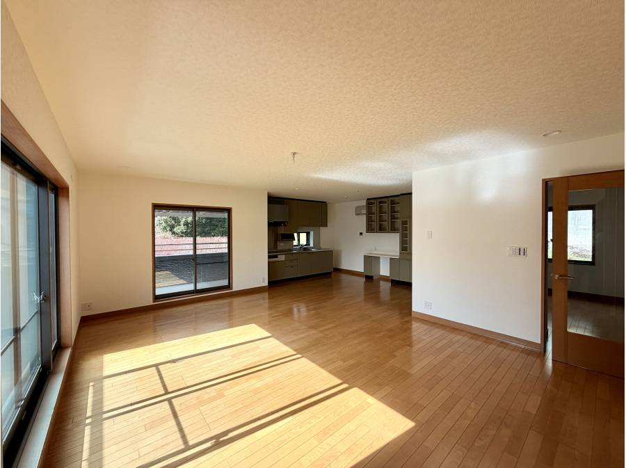 1階2階どちらにもバスルーム、トイレ、キッチンがあり2世帯でも住める広い間取り。一階LDKは21帖。玄関すぐには和室お出迎えまったりとくつろげる空間が広がります。