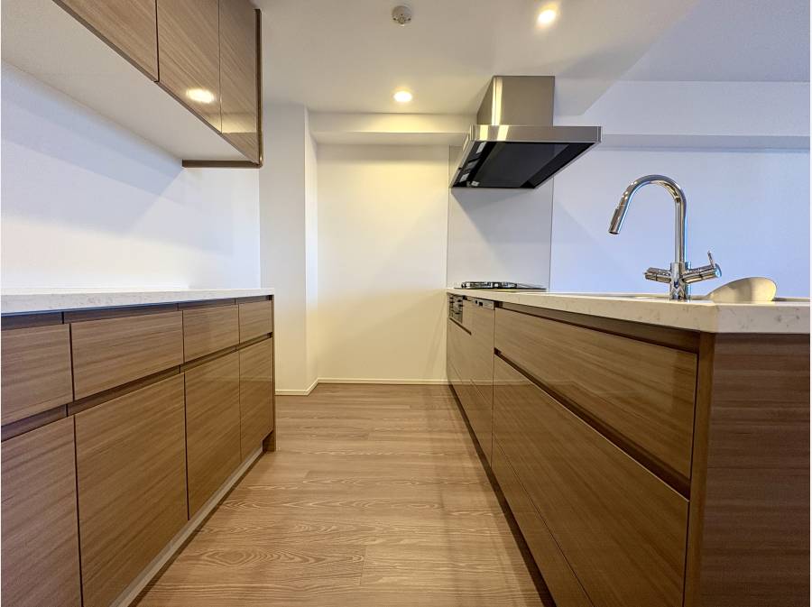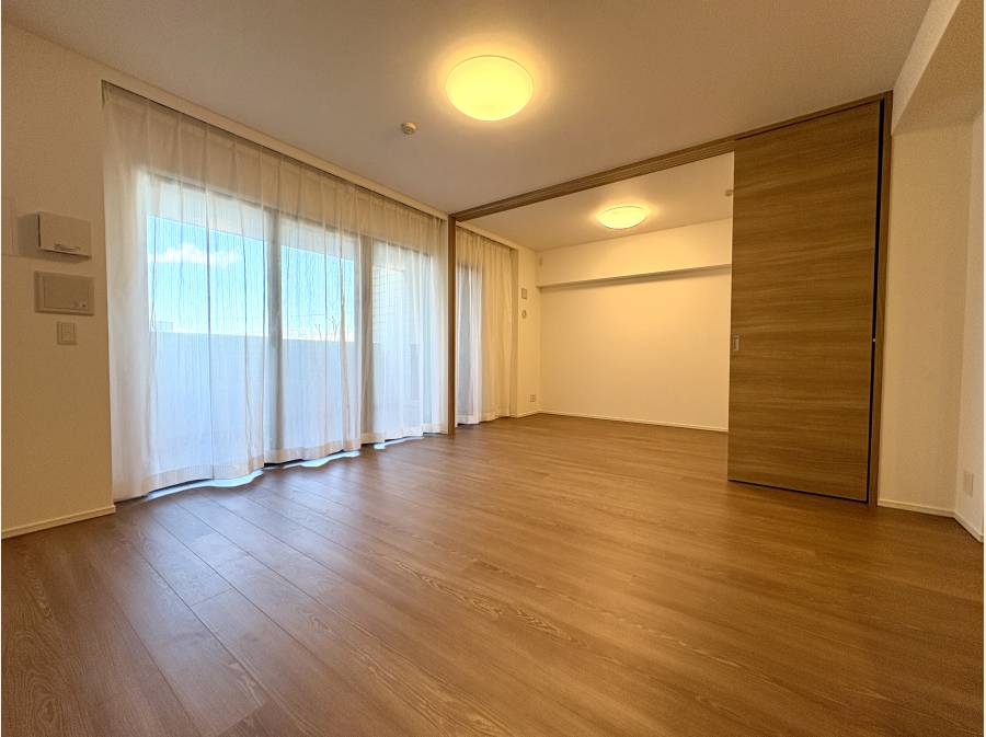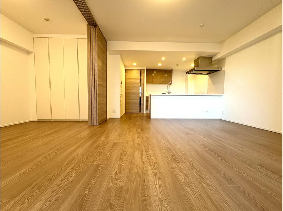 オープンキッチンのあるLDKは、隣接する洋室と繋げることでゆとりある広さとなり、バルコニーとの一体感が自然な開放感をもたらします。