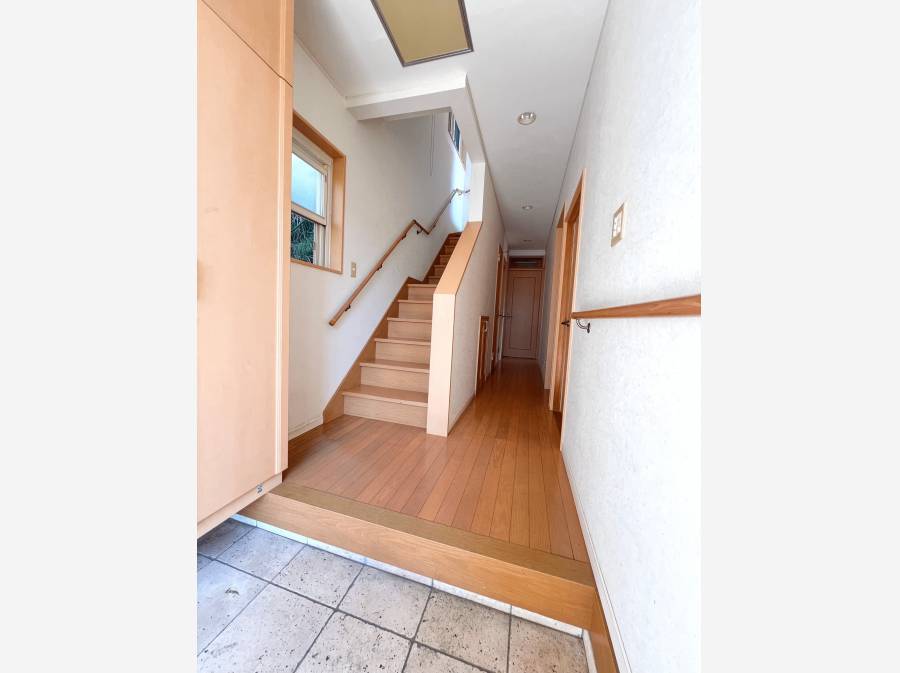 高台に位置する敷地のため、玄関アプローチからすでに視界が開け、穏やかな眺望が迎えてくれます。
