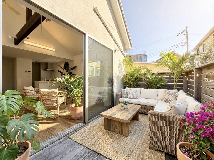 内と外が一体となったこの空間は、休日のブランチや読書など、暮らしの楽しみを何倍にも広げてくれるアウトドアリビングです。