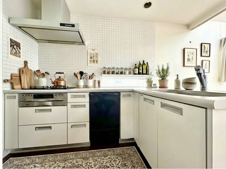 料理が楽しくなるこだわりの「L型キッチン」や、洗練された「造作洗面台」など、細部のデザインにもこだわりが光ります。