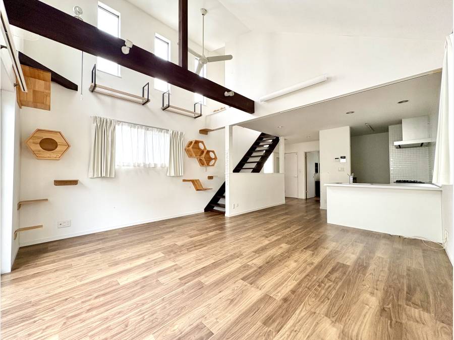 室内はこだわりながら丁寧に設計されており、吹き抜けの天井と開放的なリビングが魅力的。
