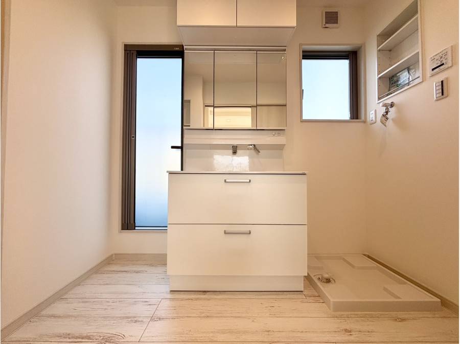 白を基調とした内装は光がよくまわり、どこを切っても生える仕上がりです。キッチン・水回りもスタイリッシュで、毎日の家事がちょっと楽しくなるはず。