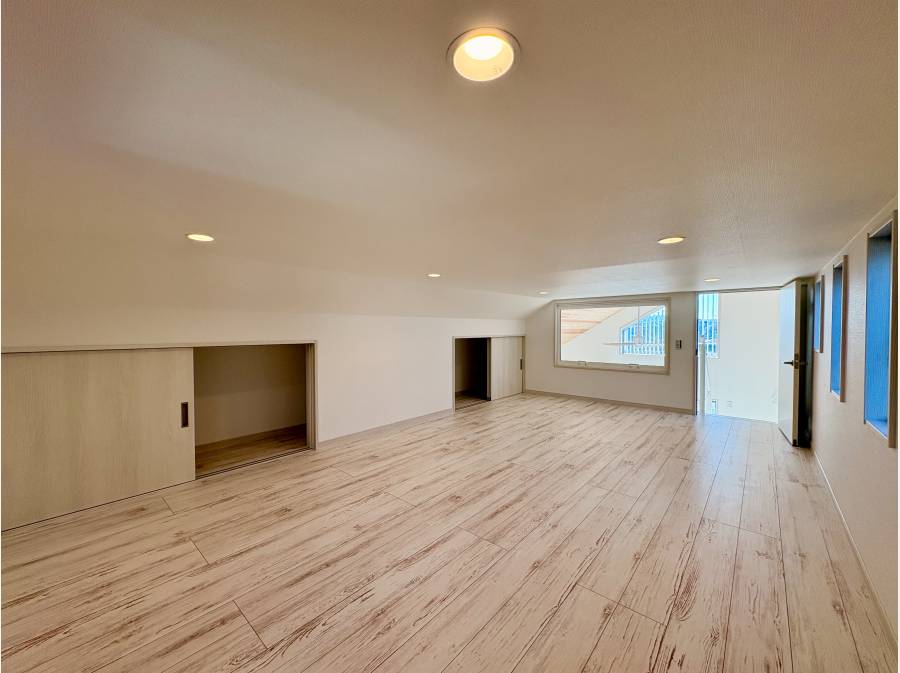 リビングの固定階段を上がると、10帖のロフトスペースが広がり、収納や趣味のスペースなど多用途に活用できます。
