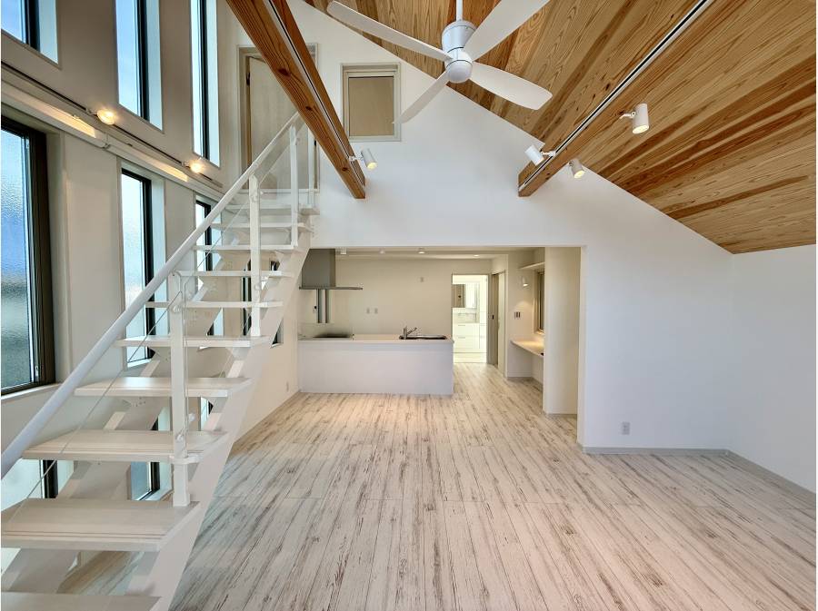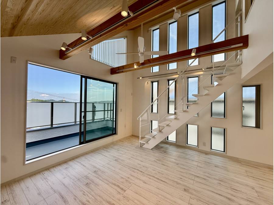 大きな窓と吹き抜けが開放的な新築デザイン住宅が誕生します。