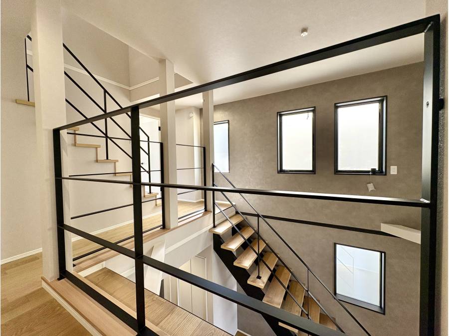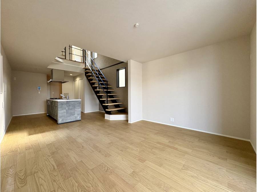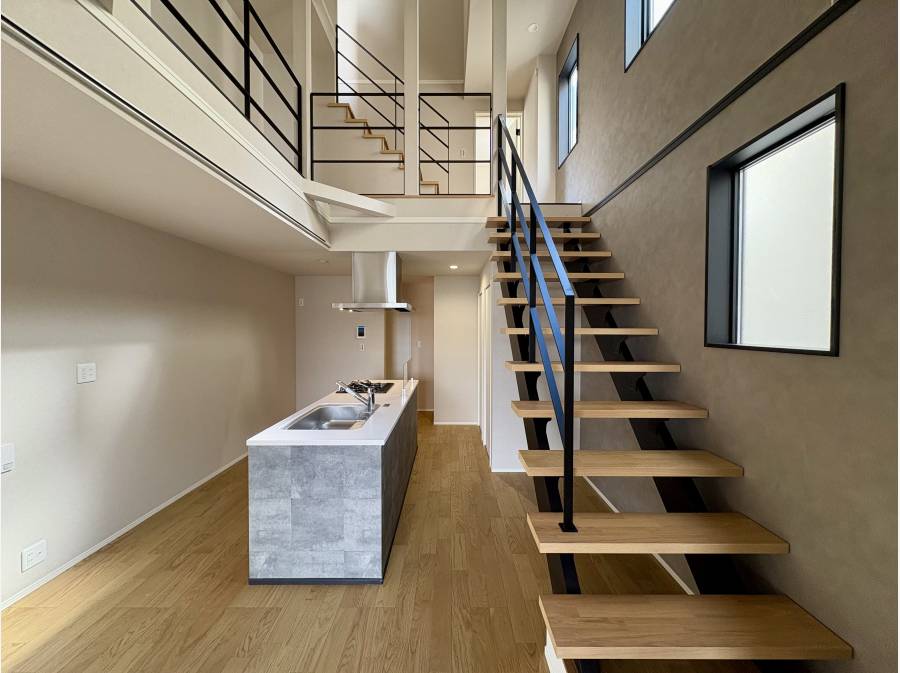 室内は、ダイニングキッチンの上部を「吹抜け」にすることで、圧倒的な開放感と明るさを実現しました。