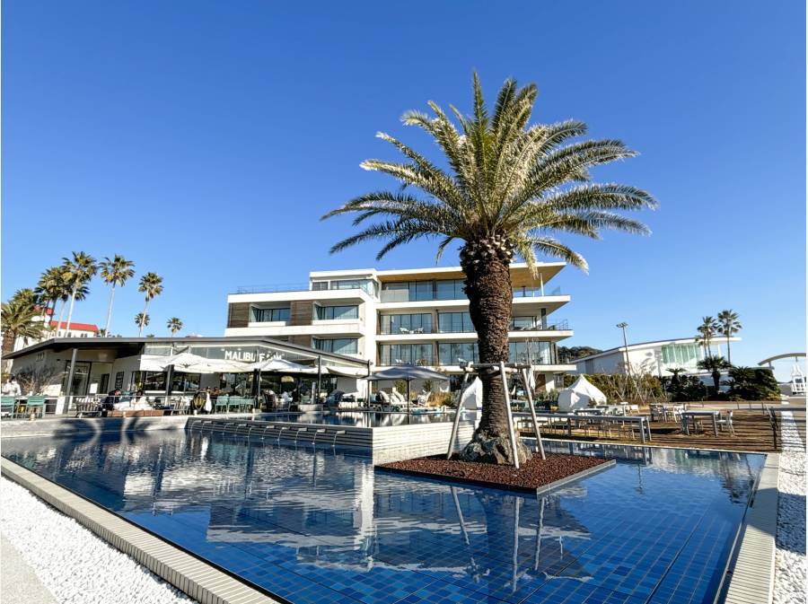 逗子の海は波が穏やかで遠浅なのでSUPやカヤックなどのマリンスポーツが人気。夏は海水浴の観光客で賑わいますが、オフシーズンは市民の憩いの場として、のんびり散歩を楽しんだり、浜辺で読書をしたりと地元の人達が思い思いの時間を過ごしています。