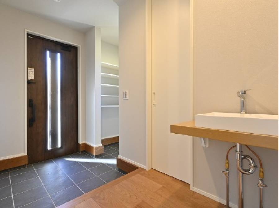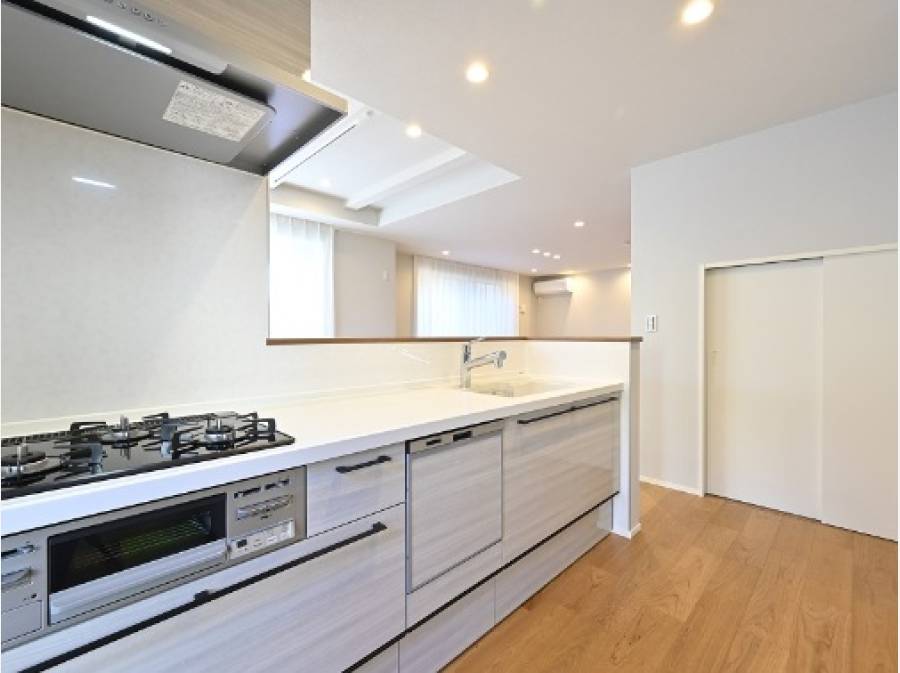 建物は耐震等級3(最高ランク)と断熱等級5を有しており、地震や火災に対して安心できる仕様です。さらに、省エネで快適な第1種換気システムを採用しており、熱ロスを抑える工夫がされています。設備も充実しており、食洗機・浄水器付きのシステムキッチンや床暖房が備わっています。また、玄関ドアにはタグキーやスマートフォンアプリで開閉可能な「ピタットKey」エントリーシステムが搭載されています。