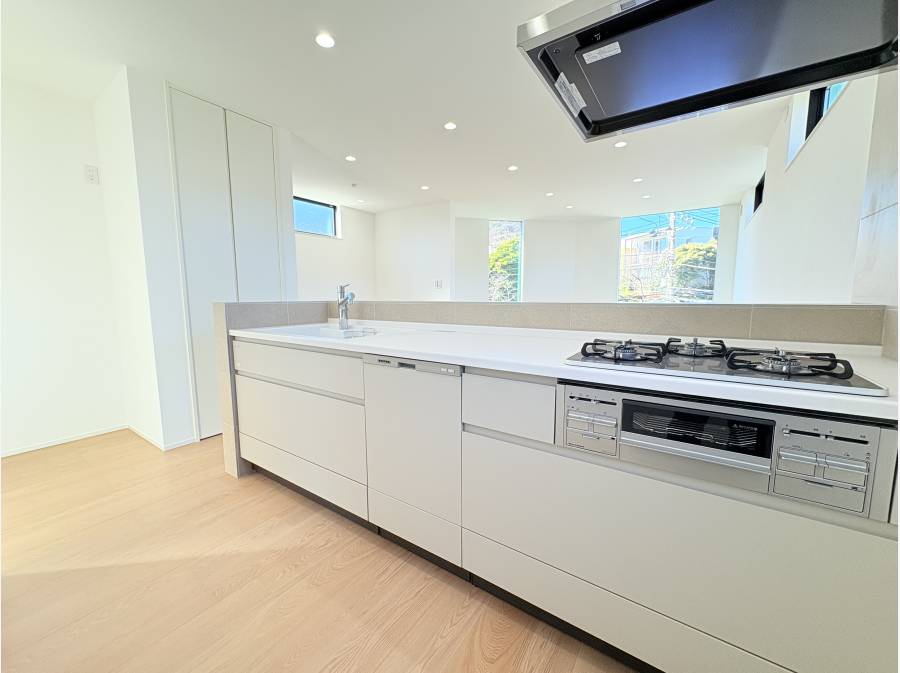 2階のリビングダイニングキッチンは、圧巻の約20.3帖を確保。
