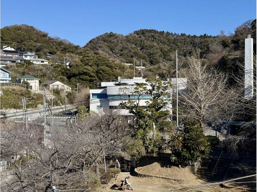 前面道路向かいは花ノ木公園、葉山町慰霊塔、