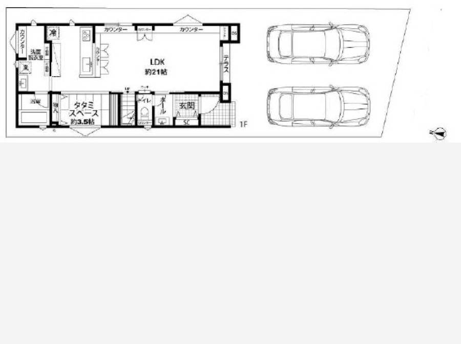 室内は、なんと約21帖の大型LDKを実現。リビングの一角には約3.5帖のタタミスペースもあり、ご家族でゆったりと寛げます!