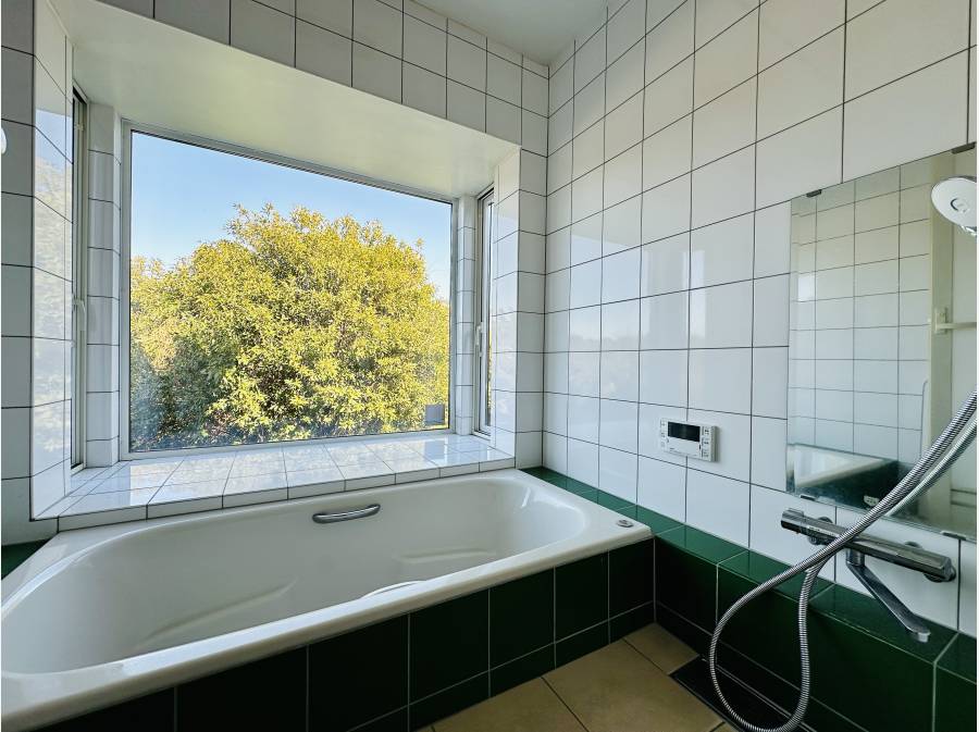 緑の借景を楽しめるバスルームや、料亭のようなダイニング