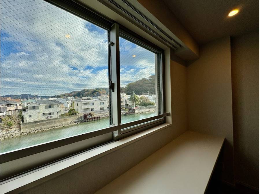 ご紹介する物件は最上階に位置し、川と山を望む一室となります。