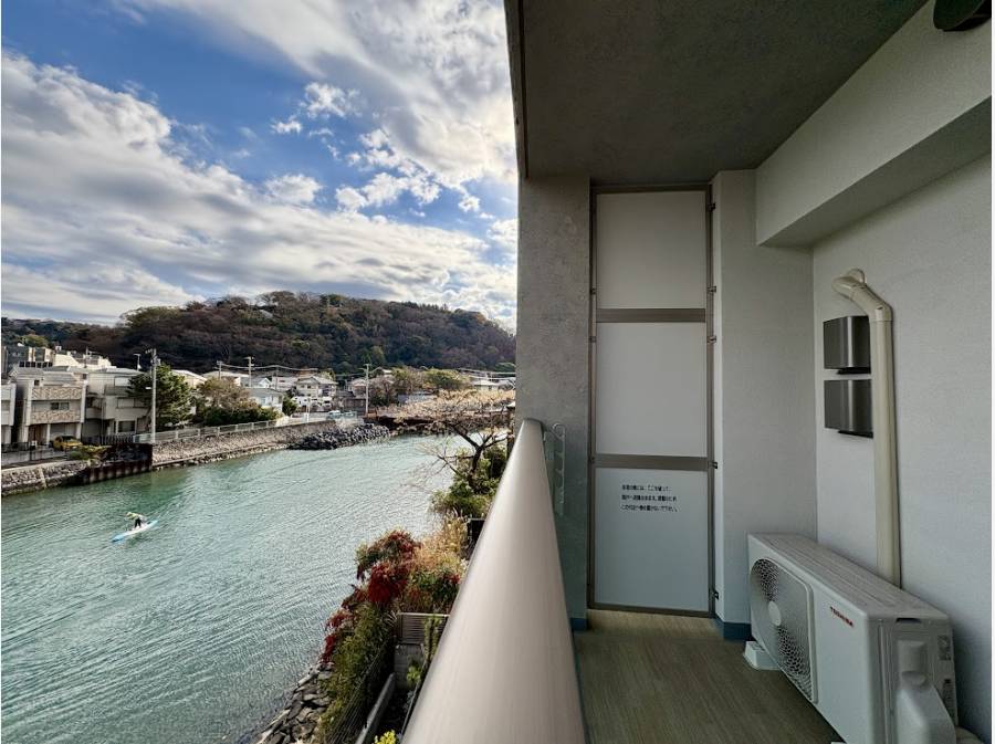 最上階に加えて、川沿いに面した好立地を活かしたロケーション。