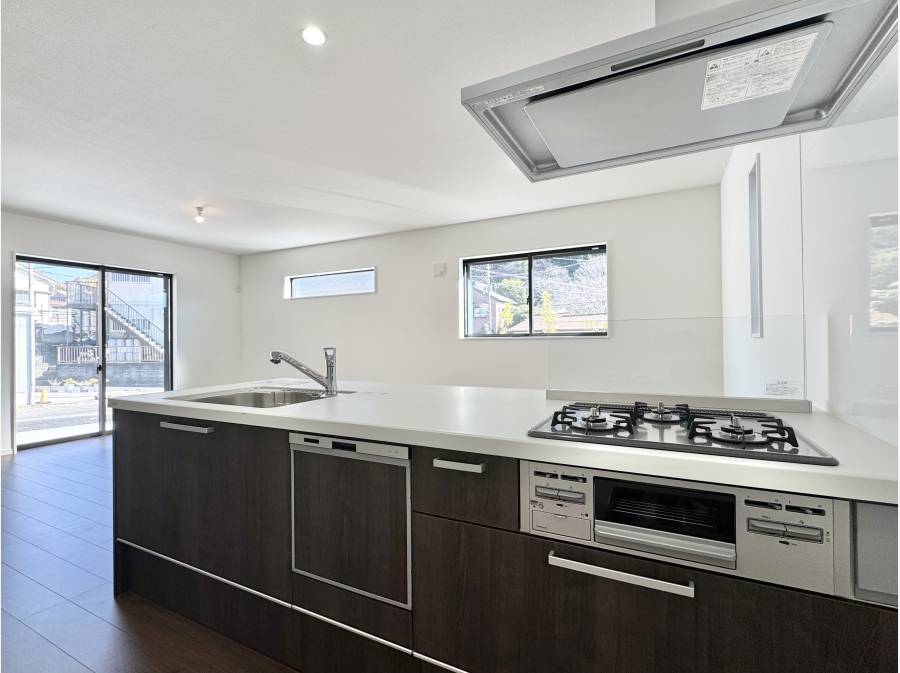 キッチンを中心にした開放的な間取りは、会話が生まれやすく、暮らしのリズムも心地よく。