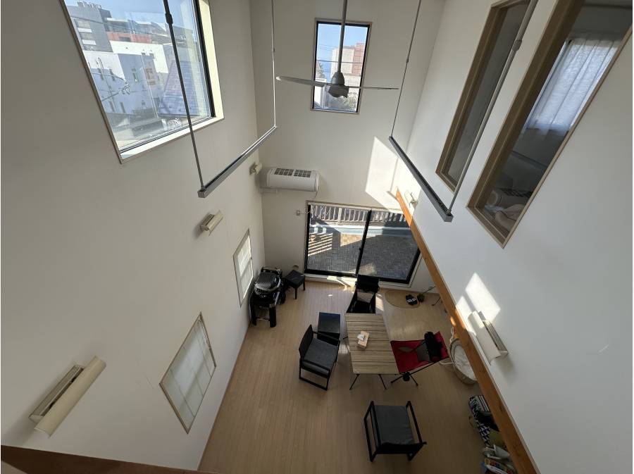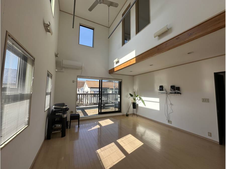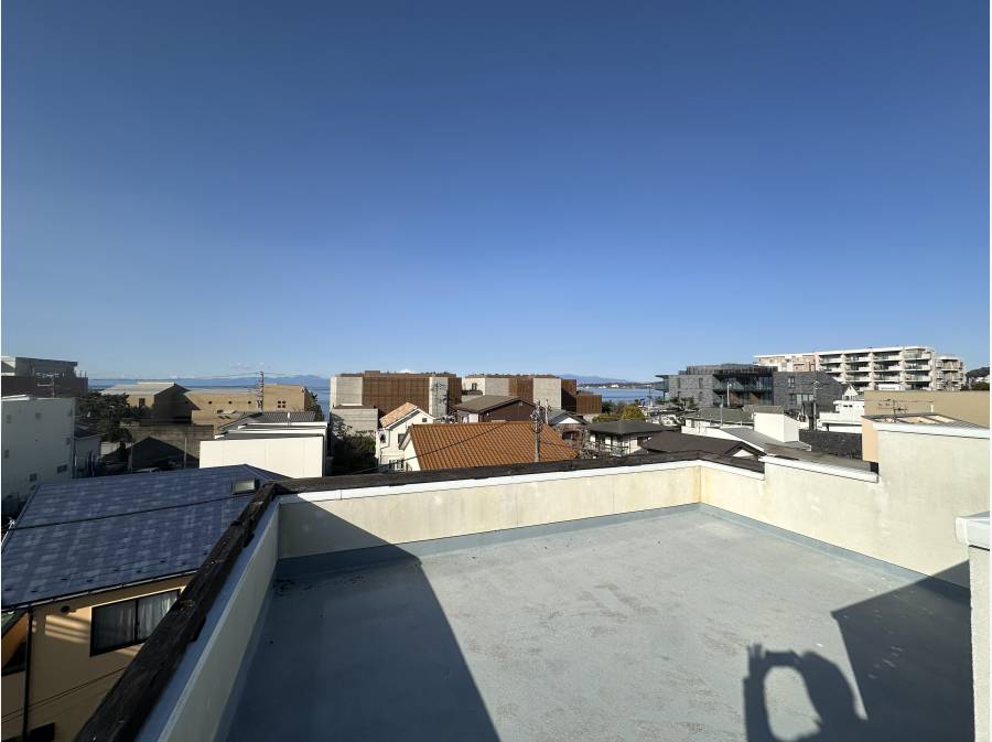 2階リビングは約4mの吹き抜けがあり、明るく開放的な空間が広がります。3階居室、屋上からは海を望む眺望も魅力です。