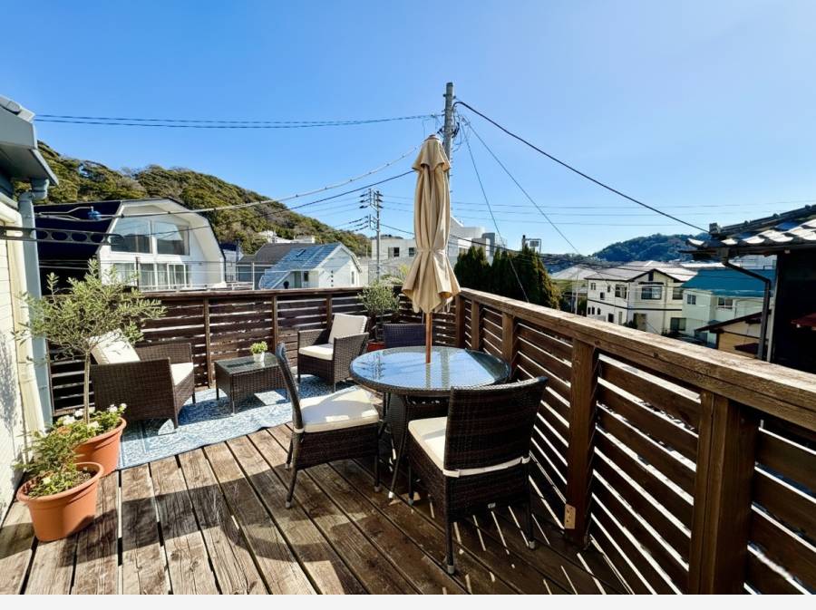 青く輝く海を室内から眺められる点が、この住まいの大きな特徴です。さらに「森戸海岸」まで徒歩約4分と、マリンレジャーや夕日を楽しむのにも理想的なロケーションです。