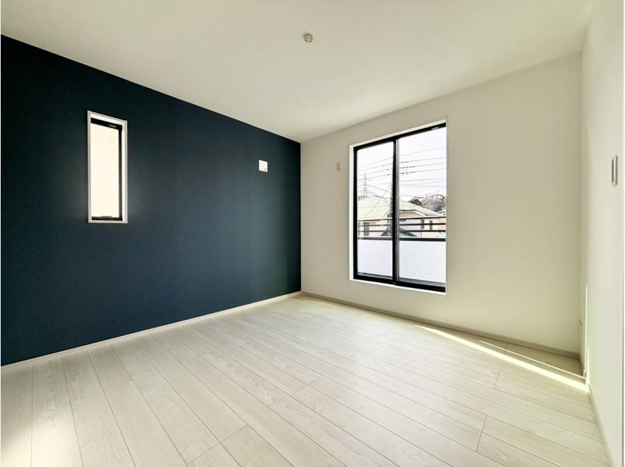 パントリーやWICを備え、収納力にも配慮されています。各居室もしっかりと広さを確保し、在宅ワークやお子様の個室にも柔軟に対応可能。南西側約6m公道に面し、駐車スペースは2台分を確保。