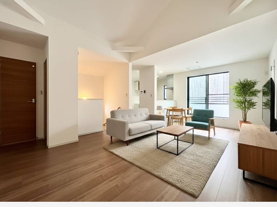 間取りは、家族が集うLDKに15.5帖以上の広さを確保した3LDKプラン 。各棟ともに2階にリビングを配置することで、外からの視線を遮りつつ、豊かな採光とプライバシーを両立させています 。お車をお持ちの方に嬉しいカースペースも完備しており、都市近郊ながら落ち着いた住環境が魅力です。