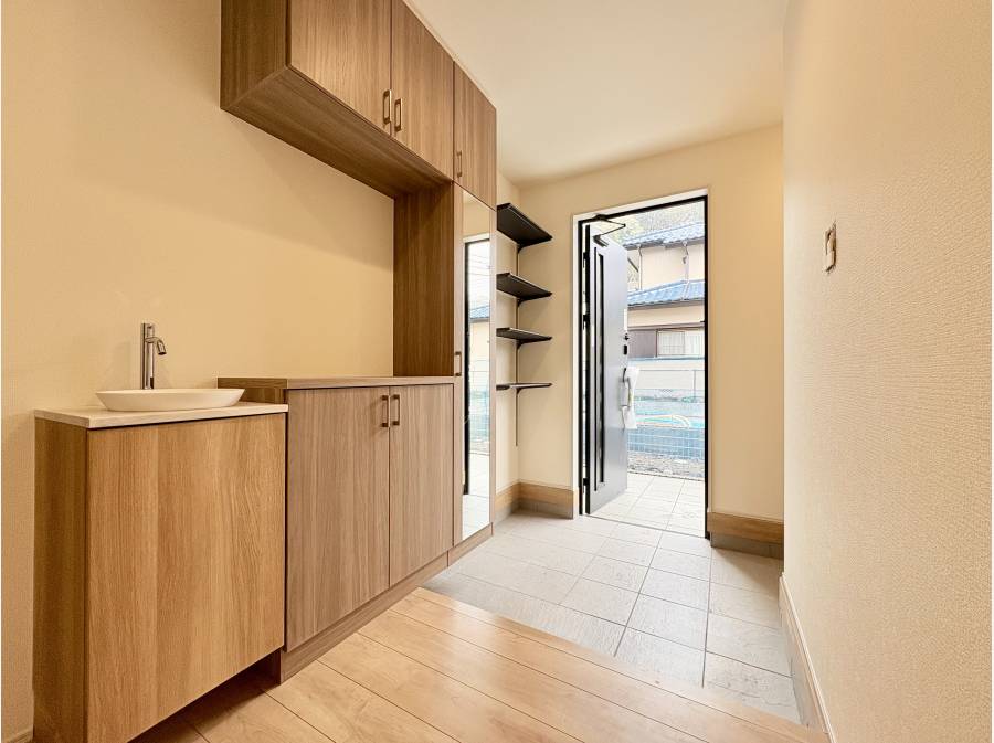1階の玄関に土間収納とシューズインクローゼット、手洗い場を設け暮らしやすさを考えた設備も魅力的です。