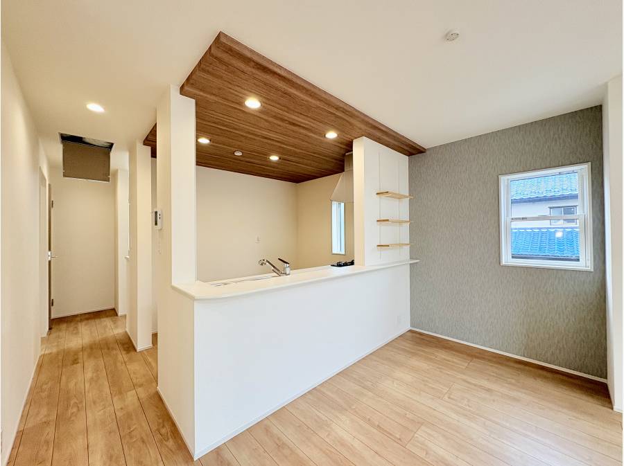 キッチンスペースにポップアップ天井お洒落な空間を演出します。
