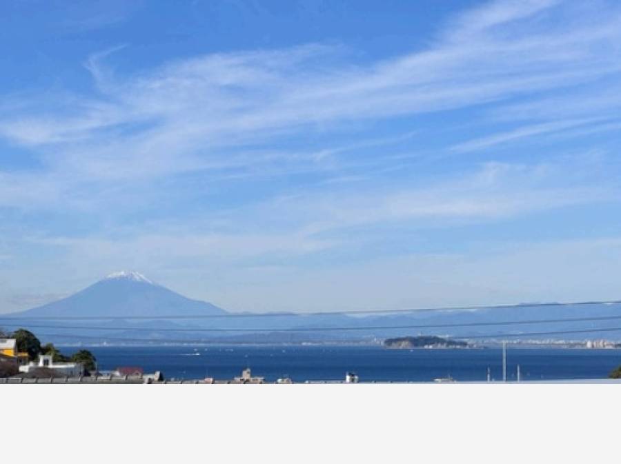 高台の閑静な住宅街に位置するこの場所からは、青く煌めく海と、雄大な富士山を遠望することができます。刻一刻と表情を変える空の色彩は、ここに住む人だけの特権です。