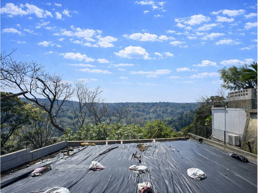 窓の先に広がるのは、視界いっぱいのグリーンビュー。葉山一色台の高台に位置する本地は、周囲の視線を感じにくく、自然そのものを暮らしに取り込めるロケーションです。