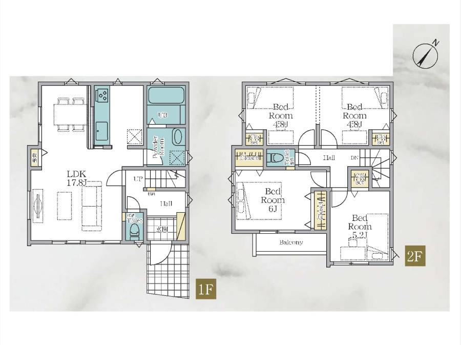 バスルームといった水回りはLDKのある1階に集約し、ワンフロアで完結できる家事動線を意識した間取り。