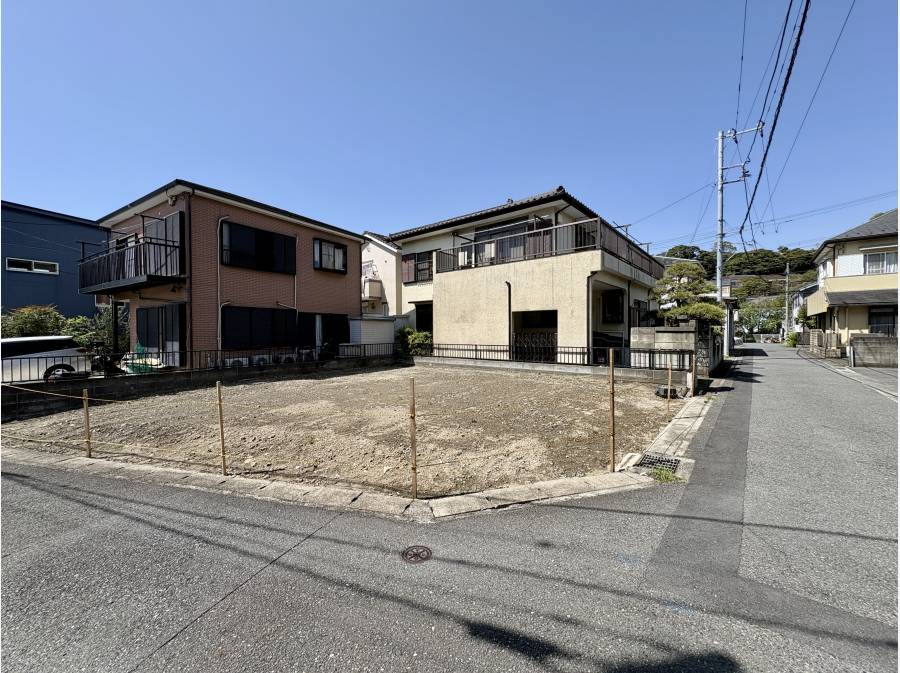 東逗子駅徒歩8分の開放感。陽当たり良好な南東角地で、建築条件なしの自由な家づくりを叶える34坪