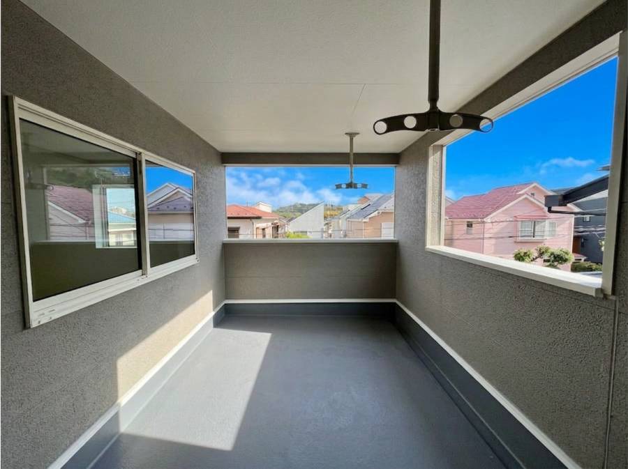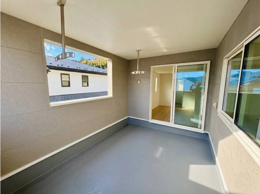 この屋根付きバルコニーがこの物件の最大の特徴と言えます。