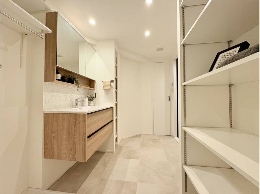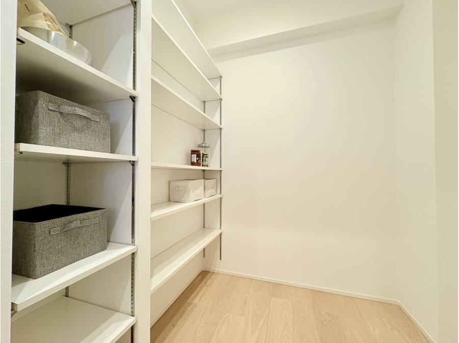 キッチン裏にはパントリー。ウォークインクローゼットや玄関収納