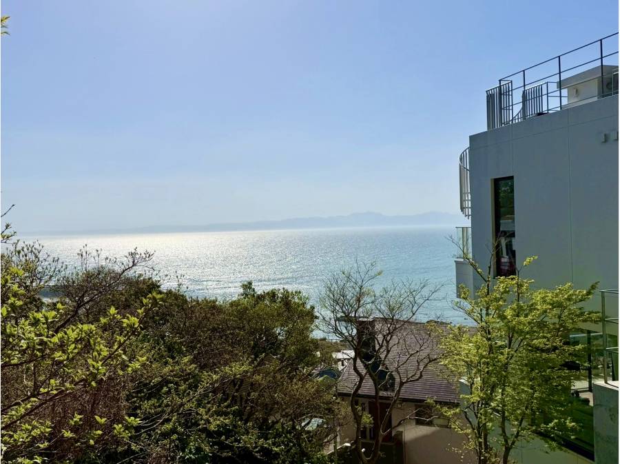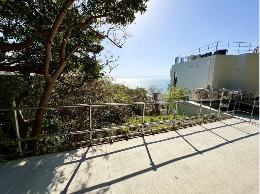 少し坂を上がったその先には、視界を遮るもののない相模湾のブルーが広がっています。