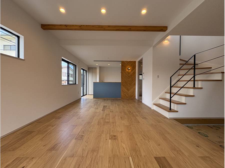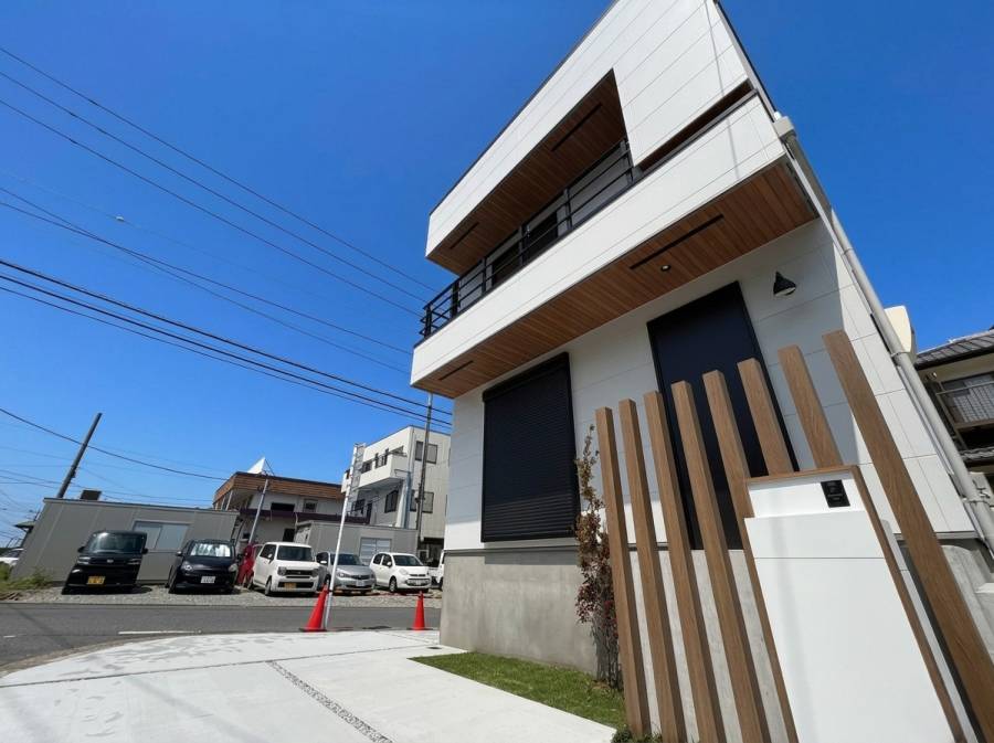 角地で目立つ場所にある為、ただ住むだけではもったいない住宅です。事務所やお店でもやりたくなるような新築住宅。